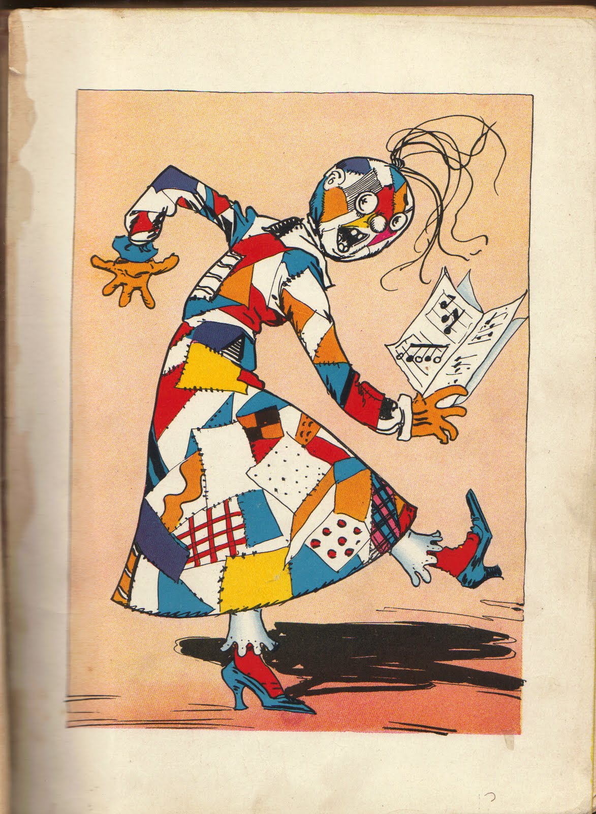 Anyways, I completed my research from Magic of Oz (1919) by L. Frank Baum and it has inspired me to veer off from my planned trajectory. This happens often when I write... and I haven't even started writing. I consider Magic of Oz to be my favorite for a variety of reasons. In particular is the lovely color plate of Scraps, The Patchwork Girl.